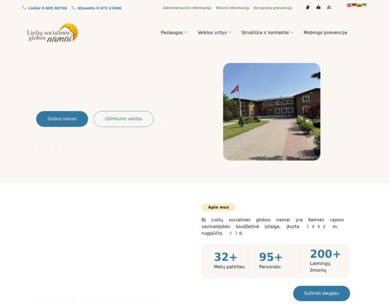 Liolių Sosyal Bakım Evi için hizmetlerini açık, şefkatli ve erişilebilir bir şekilde sunan modern bir web sitesi oluşturduk. Platform, sakinlerin, ailelerin ve bakım verenlerin gerekli bilgilere hızlıca ulaşmasına ve sunulan desteği daha iyi anlamasına yardımcı olur.